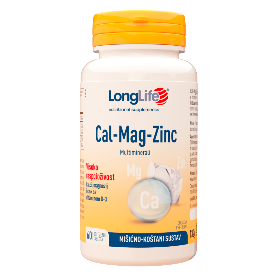 Cal-Mag-Zinc je spoj važnih hranjivih tvari – kalcija, magnezija, cinka i vitamina D – koji sinergijski osiguravaju optimalnu funkciju kardiovaslurnog, mišićnog i živčanog sustava.