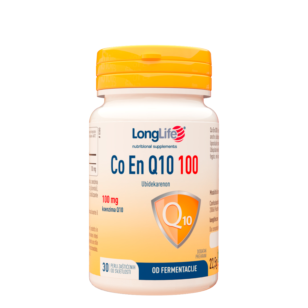 Co En Q10 100 mg je dodatak prehrani. Koenzim Q10 je esencijalna tvar, slična vitaminima, koja je topiva u mastima i prisutan je u svim stanicama stoga se u stručnoj literaturi naziva ubikinon koji dolazi od latinske riječi ubiquitus što znači svugdje prisutan. Ujedno je i snažan prirodan antioksidans.