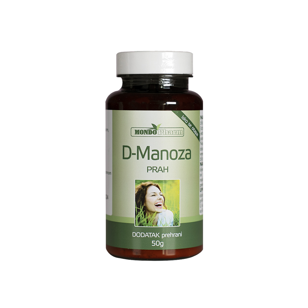 D-manoza, jednostavna molekula šećera, koja se prirodno nalazi u biljkama poput brusnice, borovnice, breskve, jabuke i naranče, ima djelovanje i do 50 puta jače od brusnice.